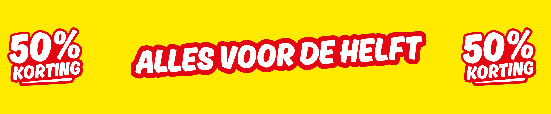 | Tekst | Het is actietijd! Onderstaande actieproducten zijn nu met 50% korting. Ja, je leest het goed: alles voor de helft. Mis het niet! |