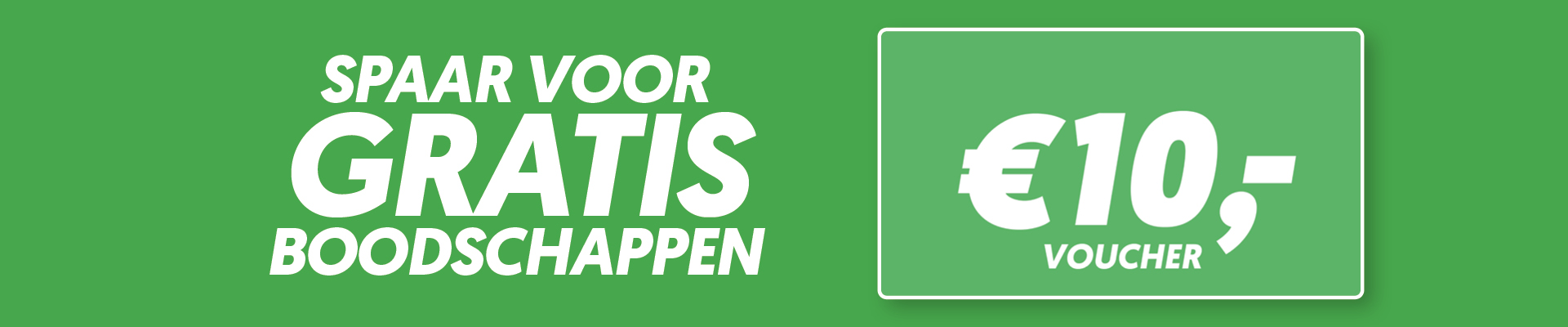 - Bij 10 zegels is de spaarkaart vol en geeft de spaarkaart recht op een voucher ter waarde van 10 euro.