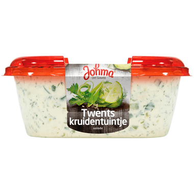 35% groenten en tuinkruiden (63% komkommer, 27% prei, 8% peterselie, 1% dille), koolzaadolie, zure room (MELK), water, suiker, natuurazijn, citroensap, gepasteuriseerd EIGEEL, gemodificeerd zetmeel, zout, specerijen (MOSTERD), zuurteregelaar (natriumacetaten), verdikkingsmiddelen (guarpitmeel, xanthaangom), conserveermiddelen (kaliumsorbaat, natriumbenzoaat), voedingszuur (citroenzuur), knoflook, natuurlijke aroma's, kleurstof (luteïne)