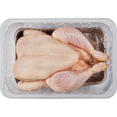 Braadpan: Verwijder de folie. Verhit olie en/of boter in een braadpan. Braad de kip rondom bruin en laat op matige temperatuur in circa 70 minuten gaar worden (circa 30 minuten per 500 gram). Oven: Verhit olie en/of boter in een braadpan en braad de kip aan. Leg de kip in een ovenschaal en plaats deze in het midden van de voorverwarmde oven (180 graden). Braad in circa 70 minuten gaar (circa 30 minuten per 500 gram).