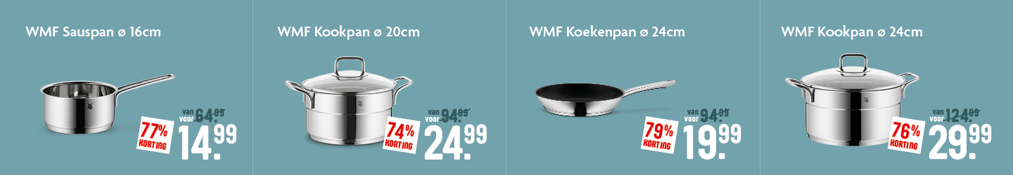 De WMF-pannen zijn van zeer hoge kwaliteit en gemaakt van Cromargan® roestvrij staal. Waardoor ze duurzaam, vormvast en makkelijk te reinigen zijn. Ook de bodem van de pannen is uniek waardoor het eten geleidelijk wordt verwarmd en langer warm blijft. Ze zijn geschikt voor alle warmtebronnen, inclusief inductie. Je kunt sparen voor 4 WMF-pannen; een sauspan, twee kookpannen en een koekenpan. Zo maak je straks de lekkerste gerechten met de meest verse ingrediënten zoals je van DekaMarkt gewend bent.